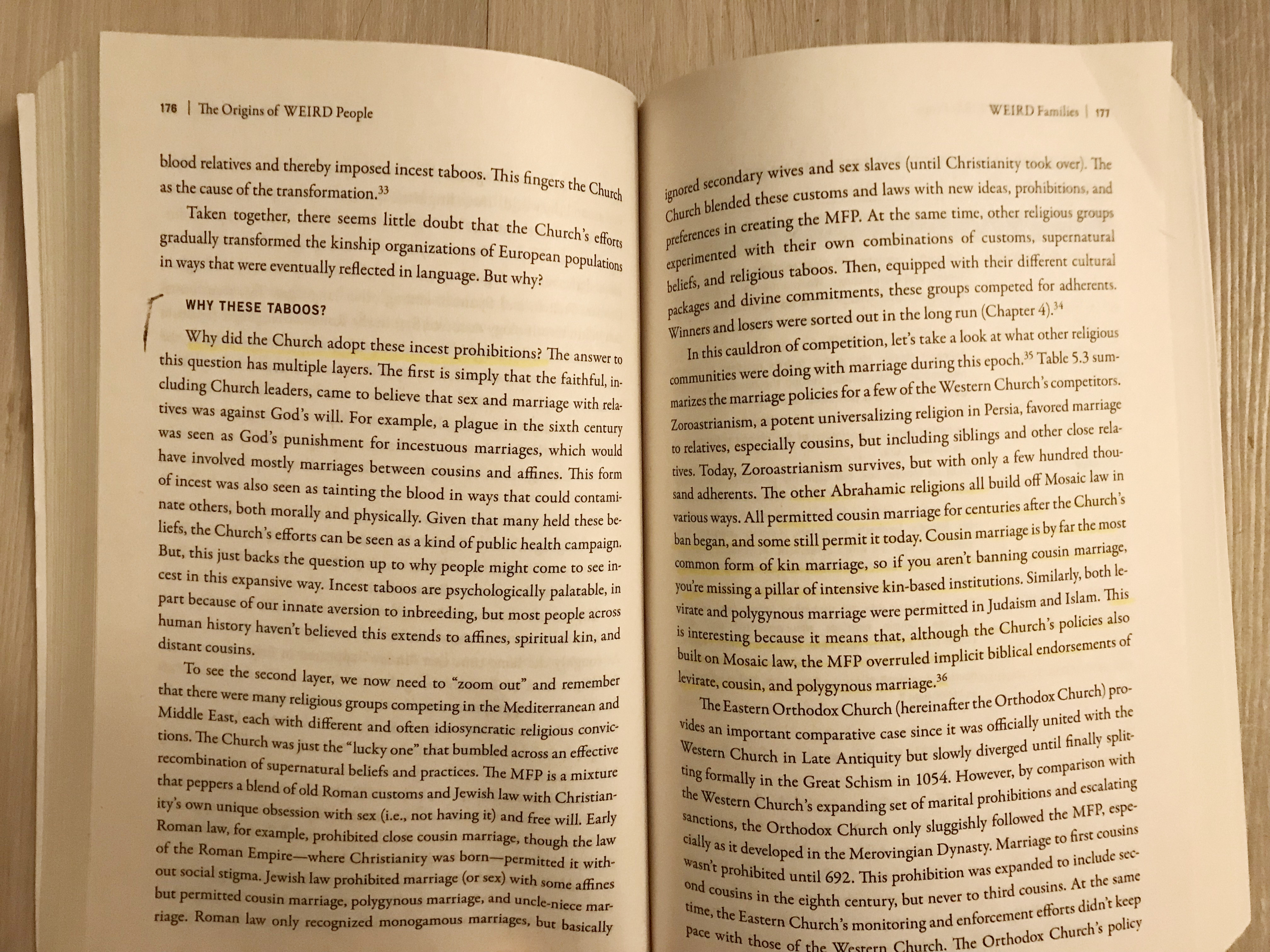 On page 176, it clearly writes, the Christian church banned incest. And then on page 177, it goes on to write, all other non-western countries engaged in lots of incest. Please read the sections I highlighted. Go get an education, bigot.